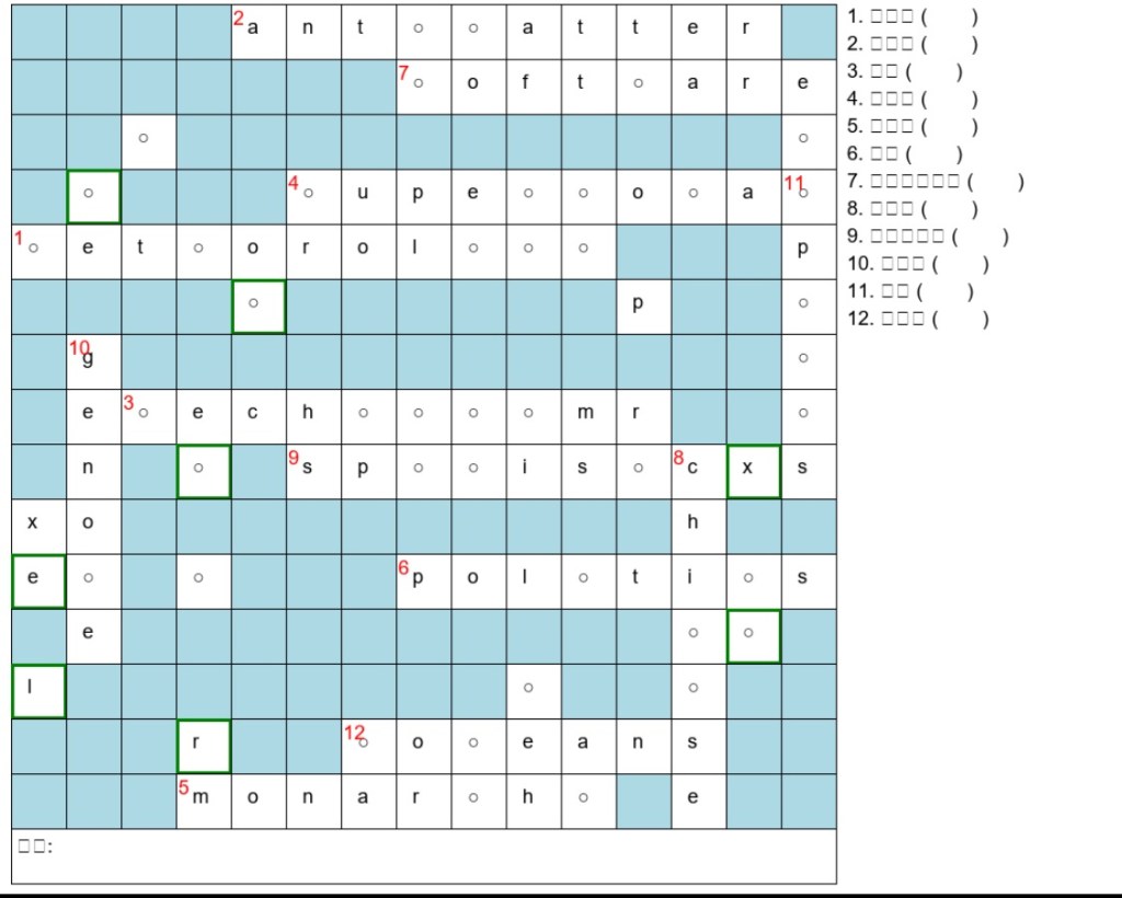 ✅ クロスワードの一部を「○」に変換し、穴埋め問題化